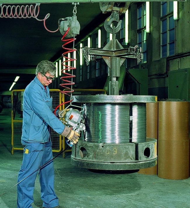 · 氣動馬達束緊與咬扣,適用曲面包裝物(如管材、鋼卷等)打包。
