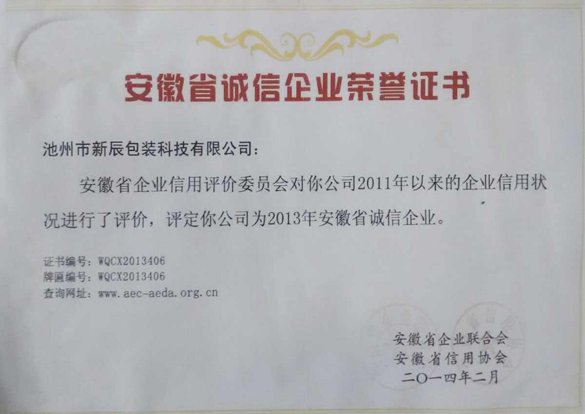 我公司榮獲安徽省誠信經(jīng)營企業(yè)榮譽稱號