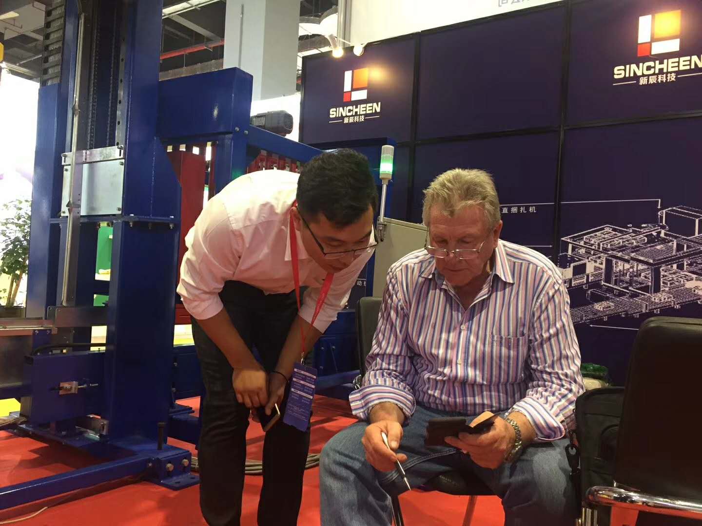 我司于國內率先研發的集自動加護角、墊條、打帶于一體的自動化包裝系統在展會上閃亮登場,展會現場一片繁忙、、、